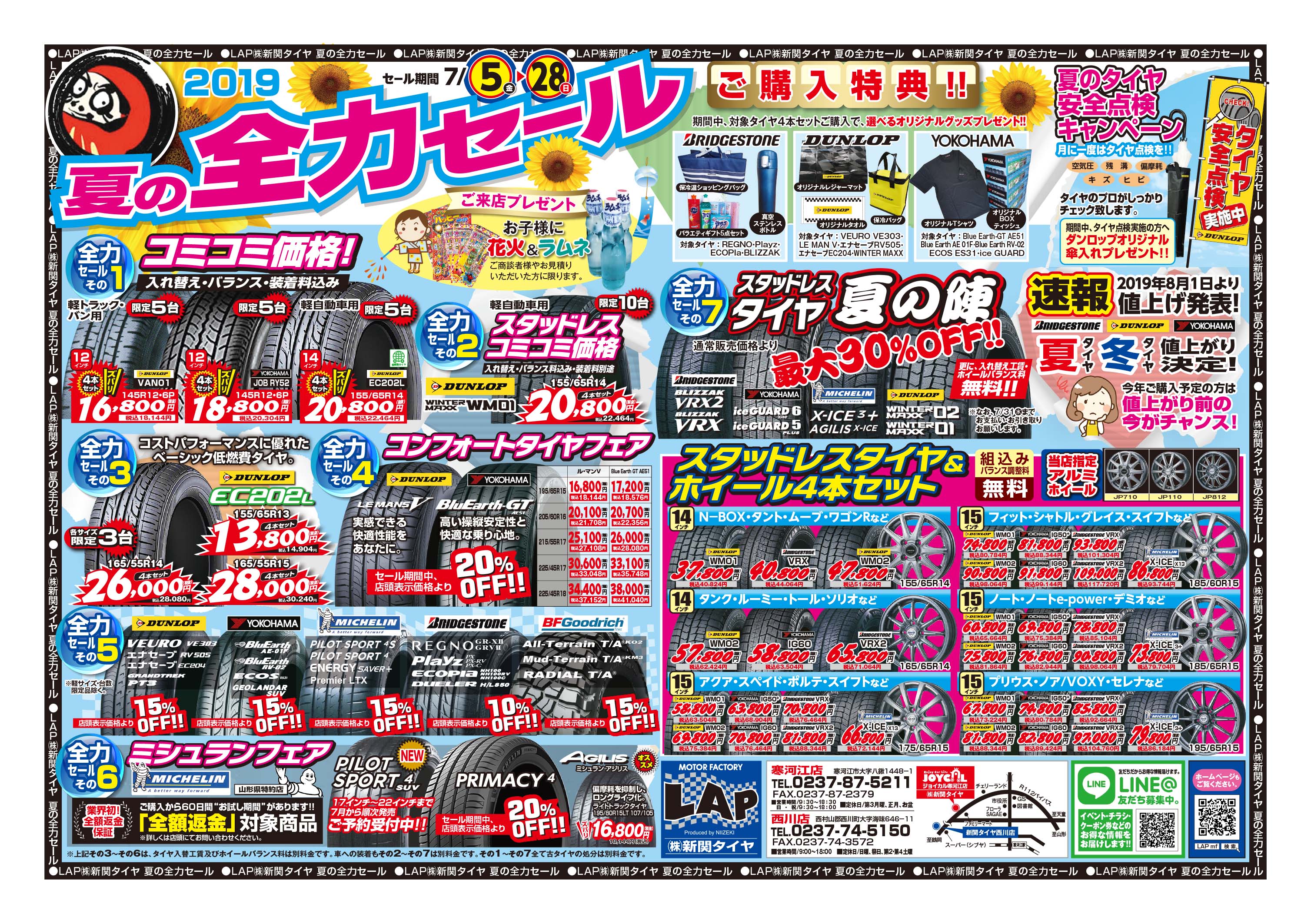 値上がり前に!夏の全力セール開催中!新関タイヤ MOTOR FACTORY LAP車検・整備やコーティング、パーツや中古車販売から自動車保険まで。