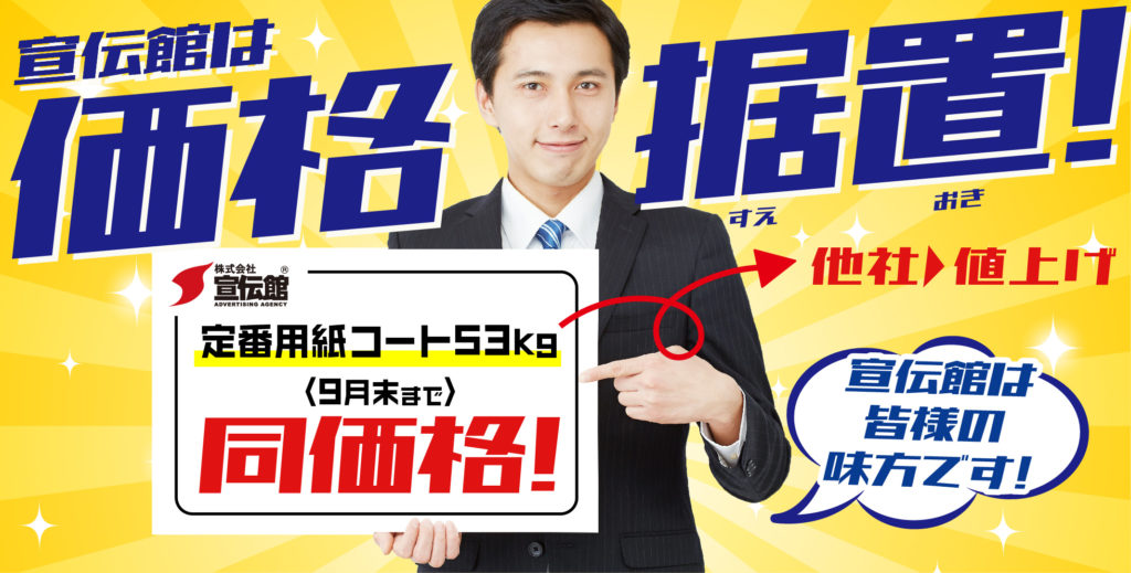 宣伝館は「コート53k」値上げしません!宣伝館ブログ激安チラシ印刷通販の宣伝館。