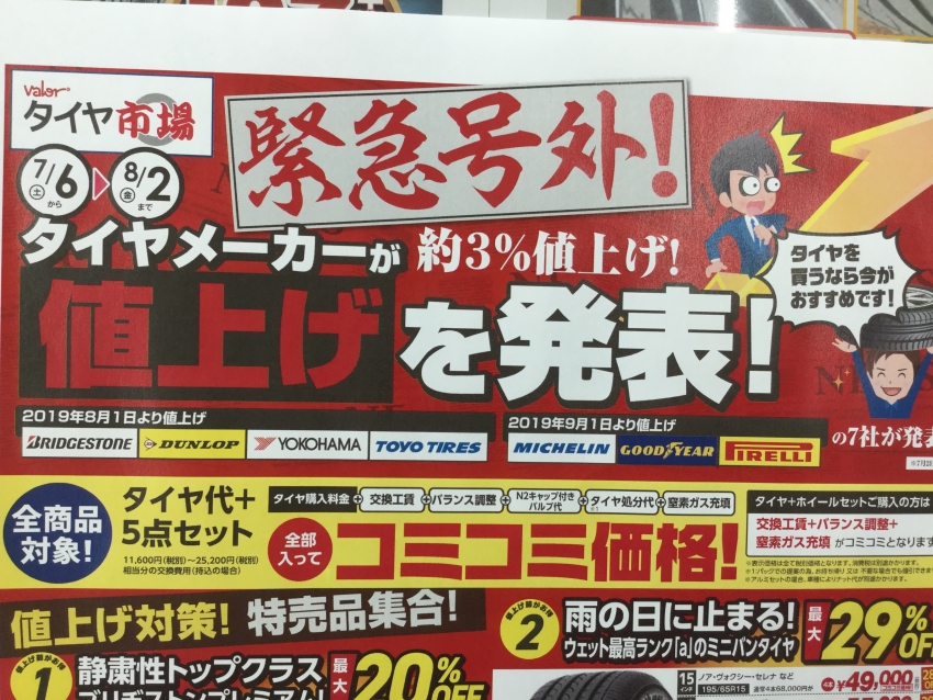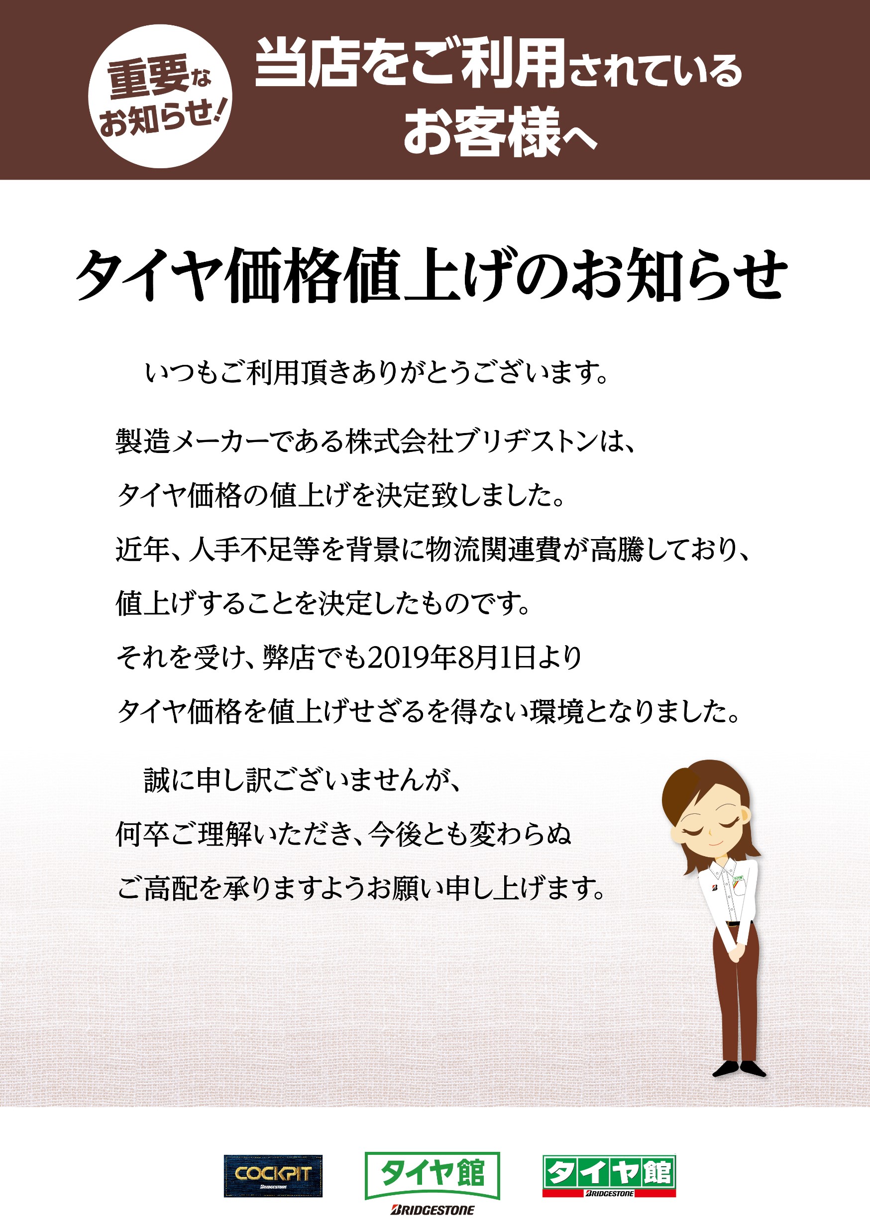 タイヤ価格値上げのお知らせ店舗おススメ情報タイヤ館 名取 宮城県。