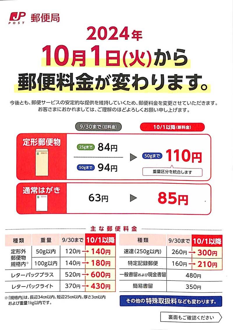2024年10月より郵便料金の値上がりが予定されています - 株式会社ビジネスベース。