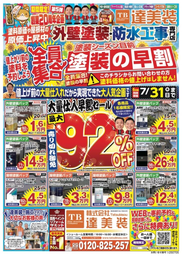 7 5 土 折込チラシが入ります!達美装の現場ブログ愛知県一宮市の達美装外壁塗装・屋根塗装・防水工事専門店。