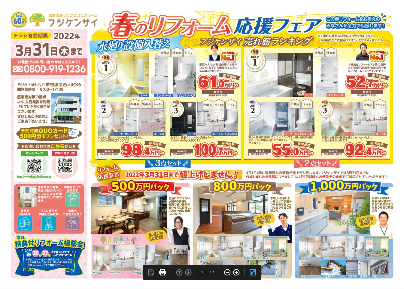 3 1~春のリフォーム応援フェア開催!! - リフォーム専門店フジケンザイ。