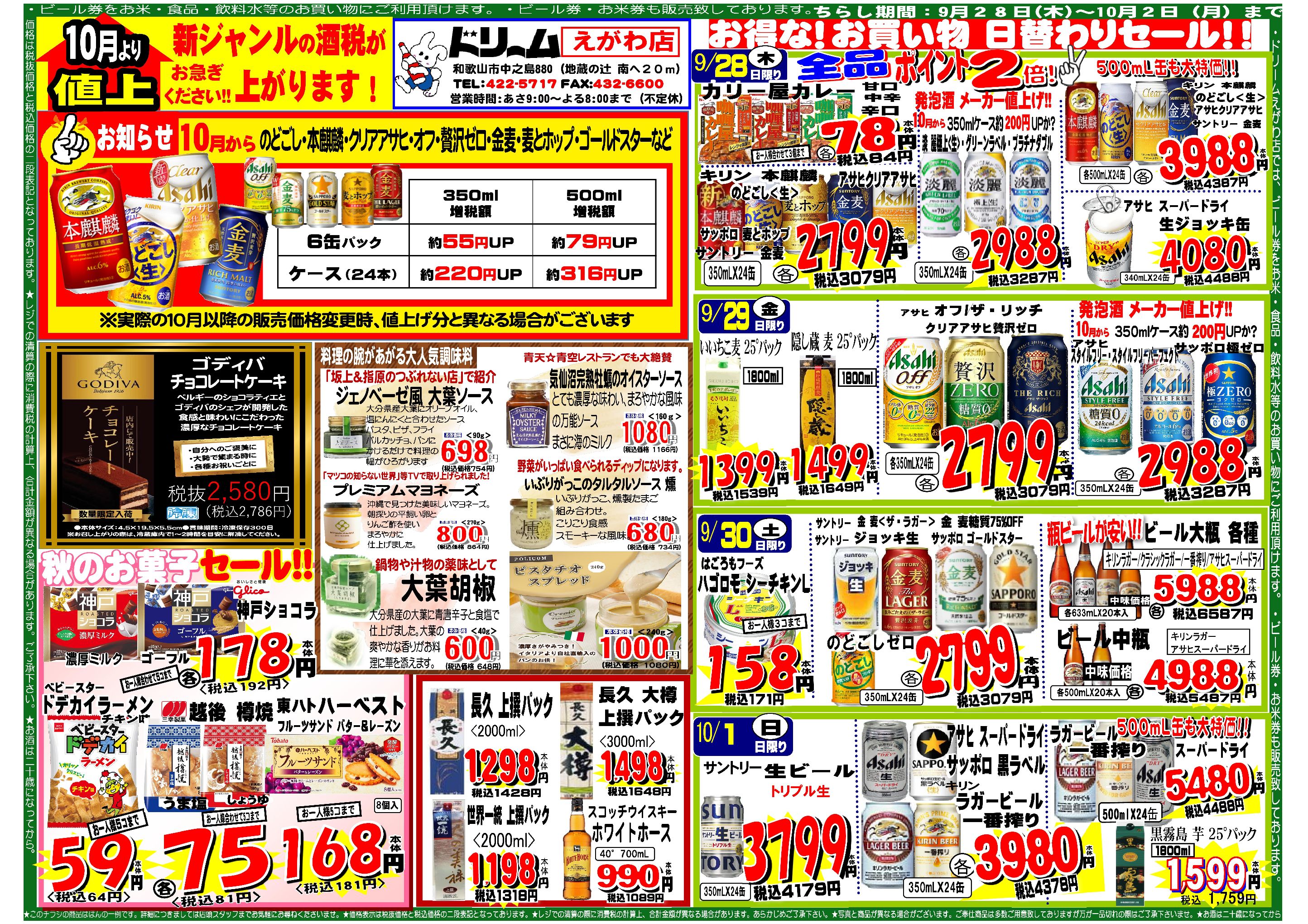9月28日木曜日より売り出しスタートします。新ジャンル10月より値上がります。値上げ前の最後のチャンス - ドリームえがわ店 店頭販売から即日配達ギフト・お米・お酒 飲料水・調味食品・タバコ 業務店様・法人様 イベント会場 一般ご家庭へ お届けいたします。