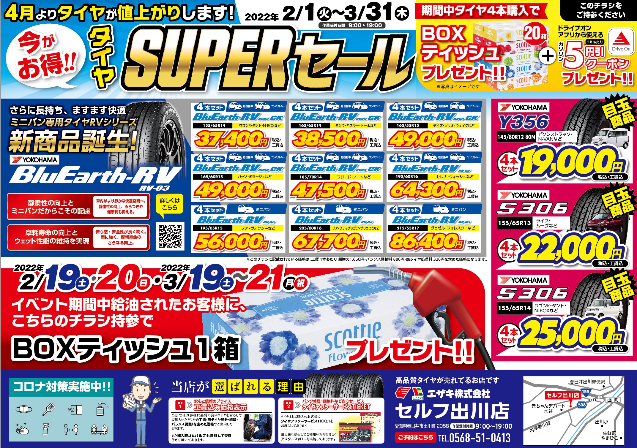 値上げ前のタイヤSUPERセール開催EZAKI GROUP エザキグループ。