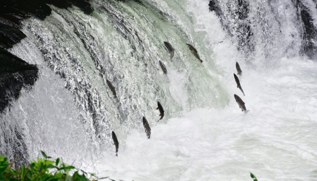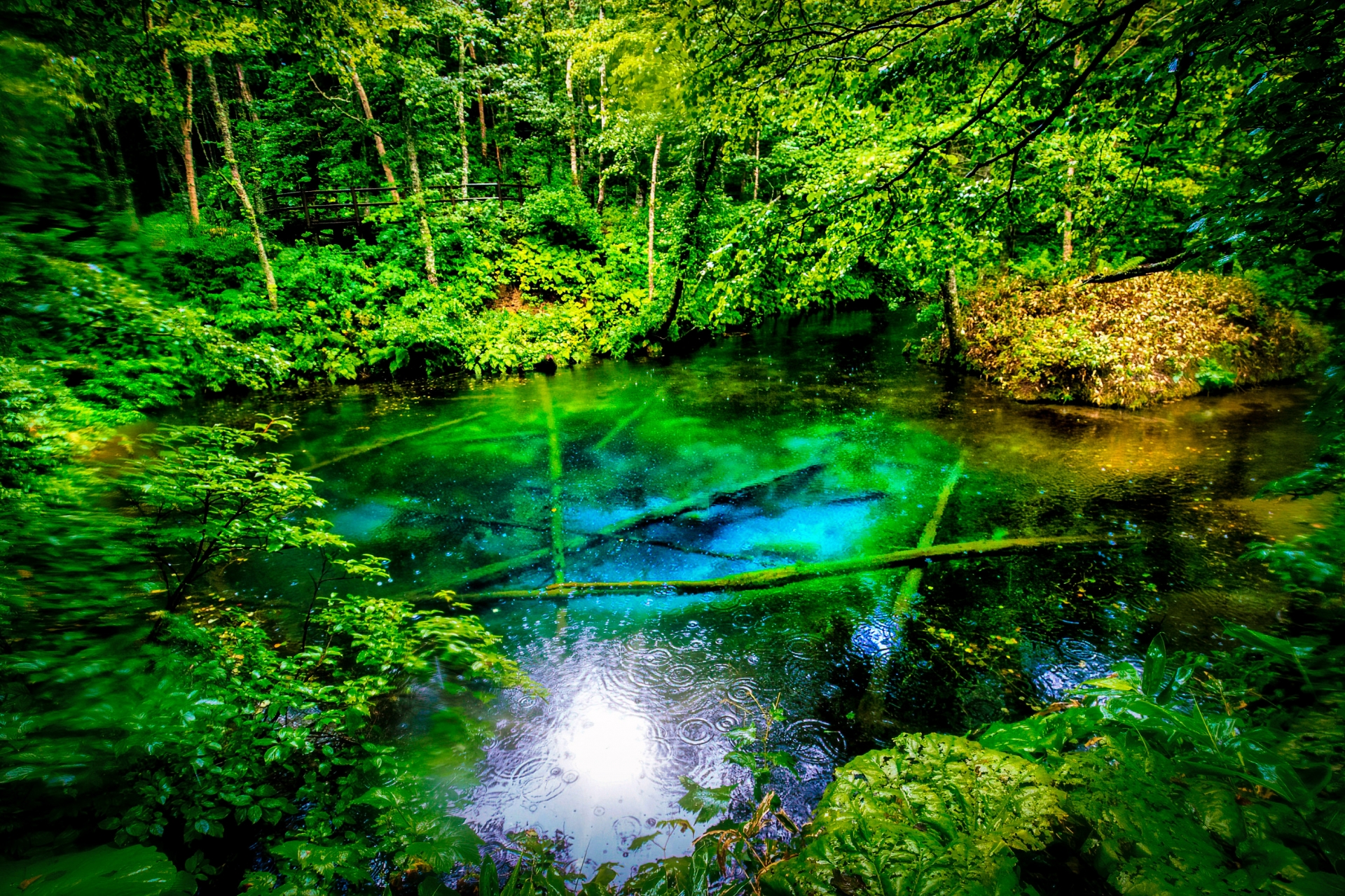 北海道「神の子池」の神秘な青と、鮭がジャンプする「さくらの滝」。