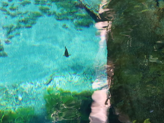 神の子池」はなぜ青い?青い池に泳ぐ魚がはっきり見えるほどの透明度。