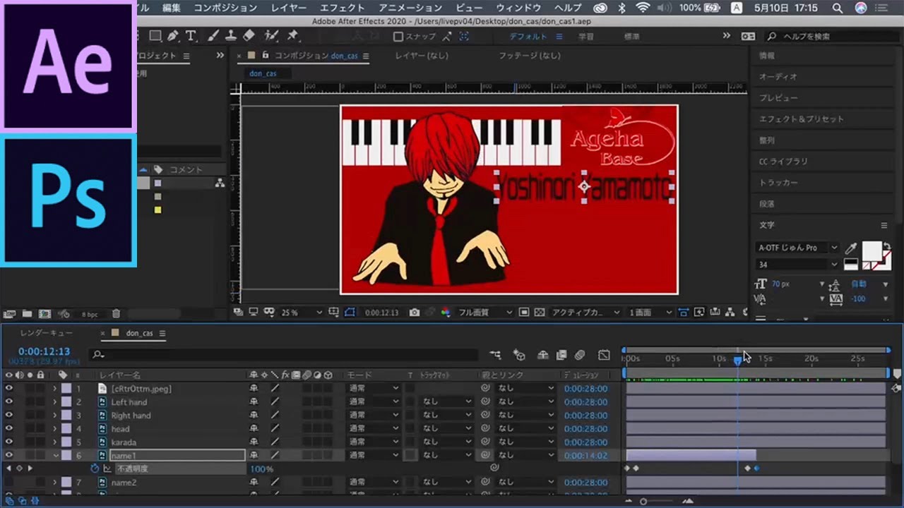 Photoshop + AfterEffects 連携 配信時の待機画面の制作①〜イラストを動かす。