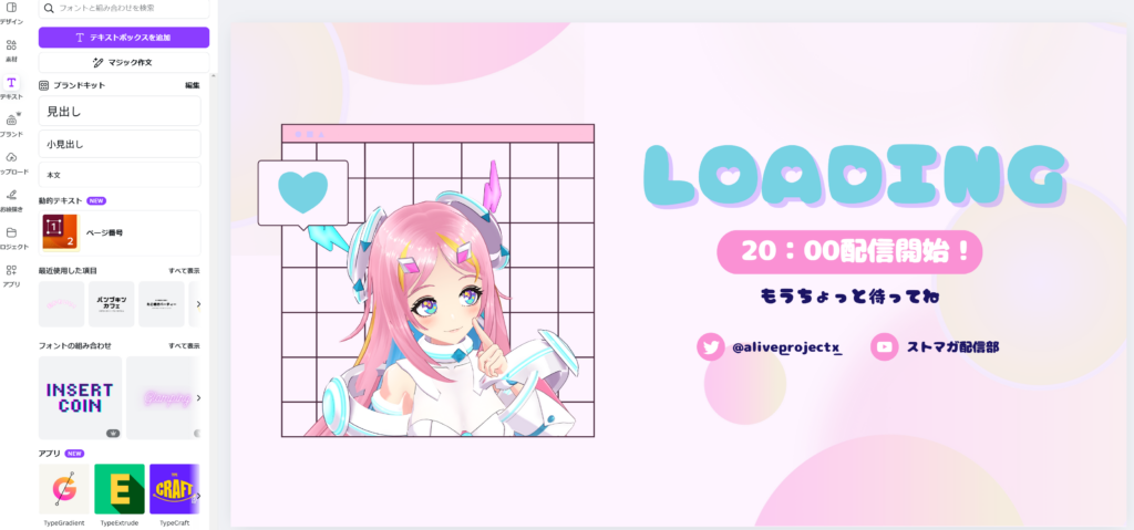 YouTubeやTwitchの配信画面の作り方 Canva キャンバGenussmittel公式。