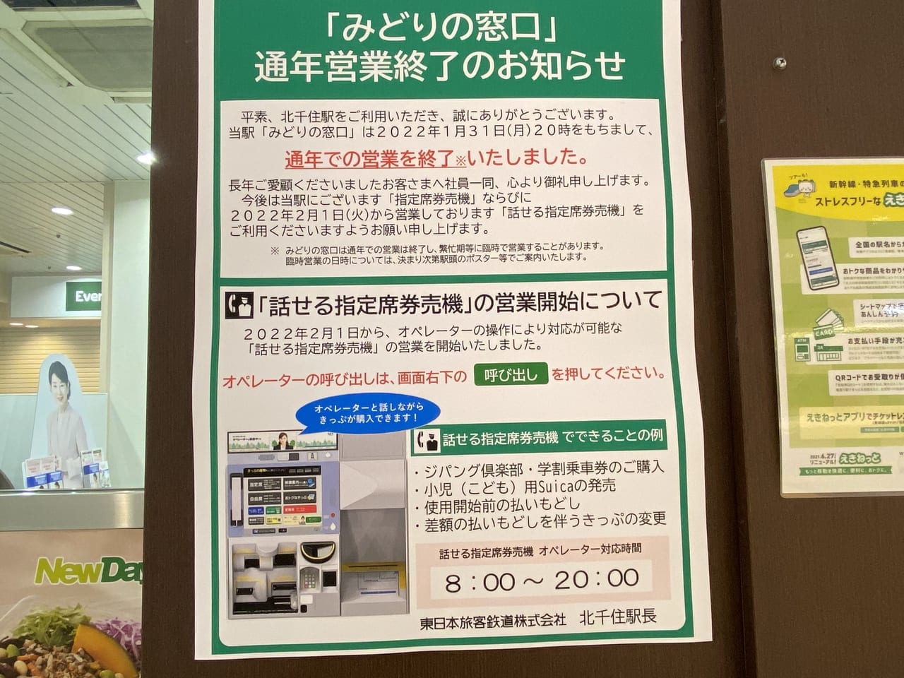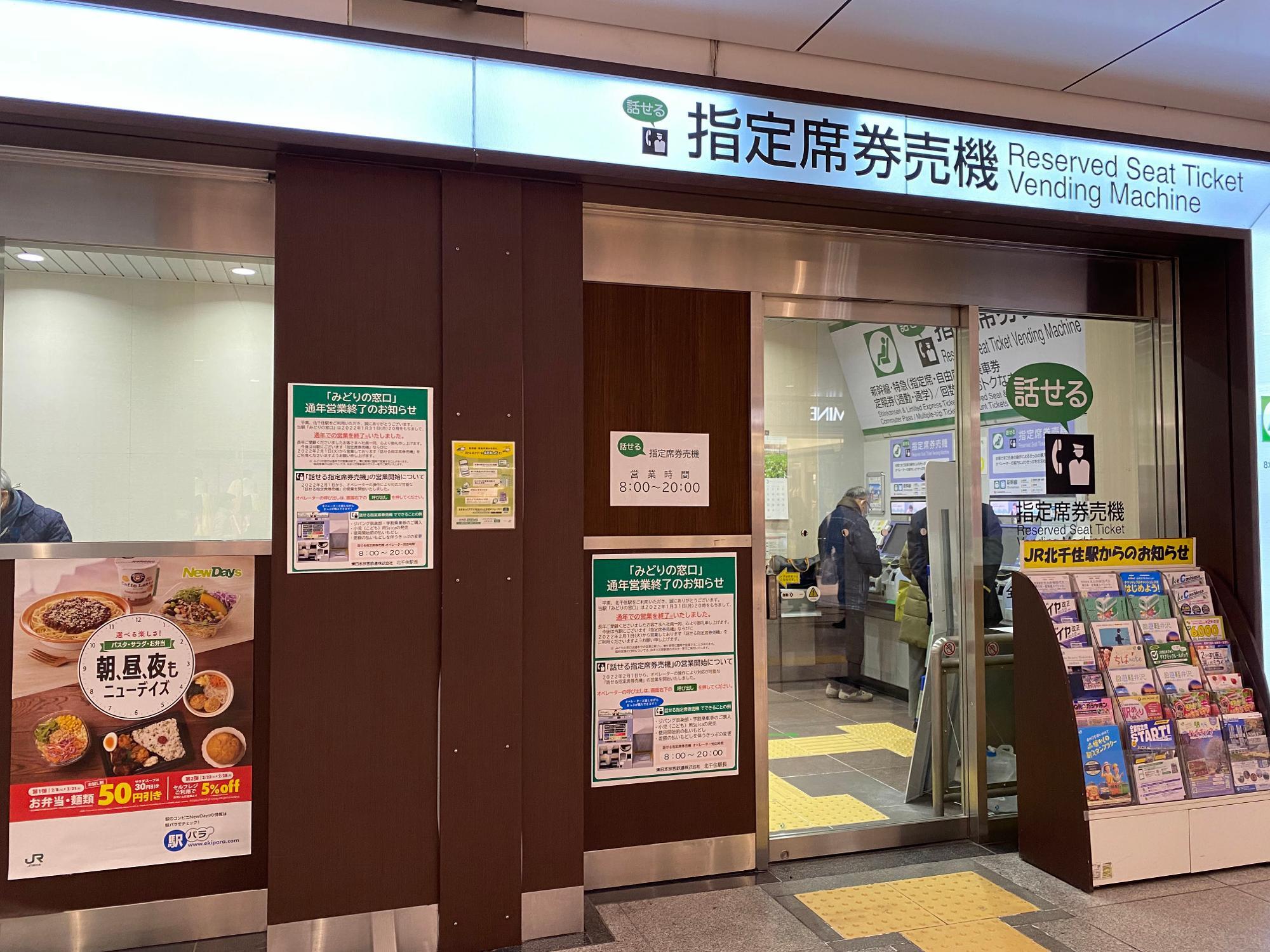 足立区 北千住駅「みどりの窓口」が通年営業を終了。代わりに「話せる指定席券売機」が登場! NORI56- エキスパート - Yahoo!ニュース。