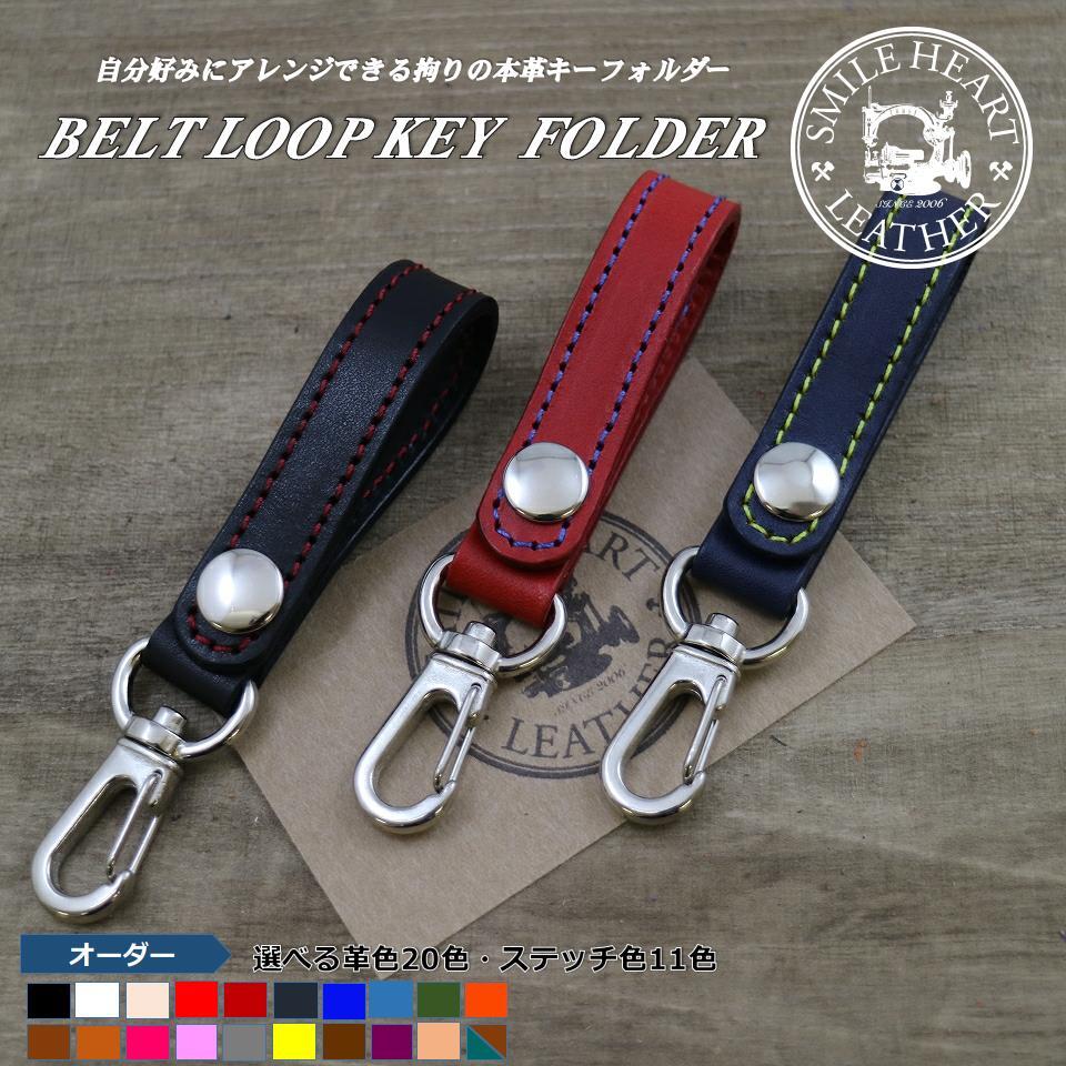 ベルトループ本革レザーキーホルダー 選べるステッチカラータイプB。