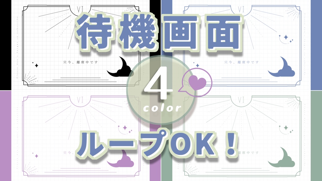 無料 4カラー 準備中 離席中 配信終了待機画面 ループ可 配信素材- お茶処 - BOOTH。