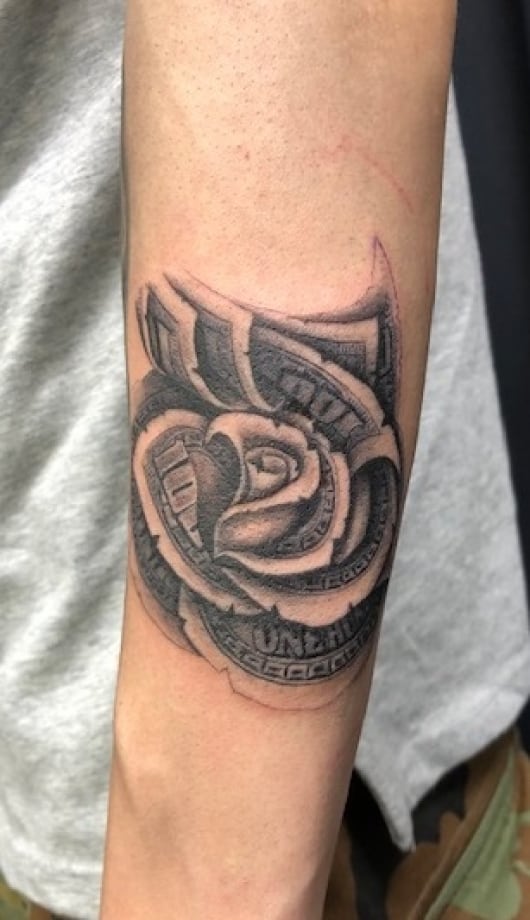 YUMA FUSHIMI腕の内側に100ドル札をバラの形にしたドル薔薇を。ドル薔薇マネーローズタトゥー刺青静岡静岡 tattoo静岡タトゥー清水区tattooirezumishizuokashimizumoneyroseInstagram。
