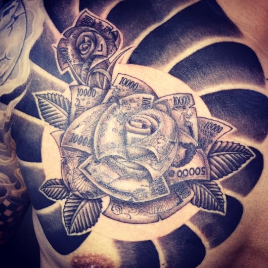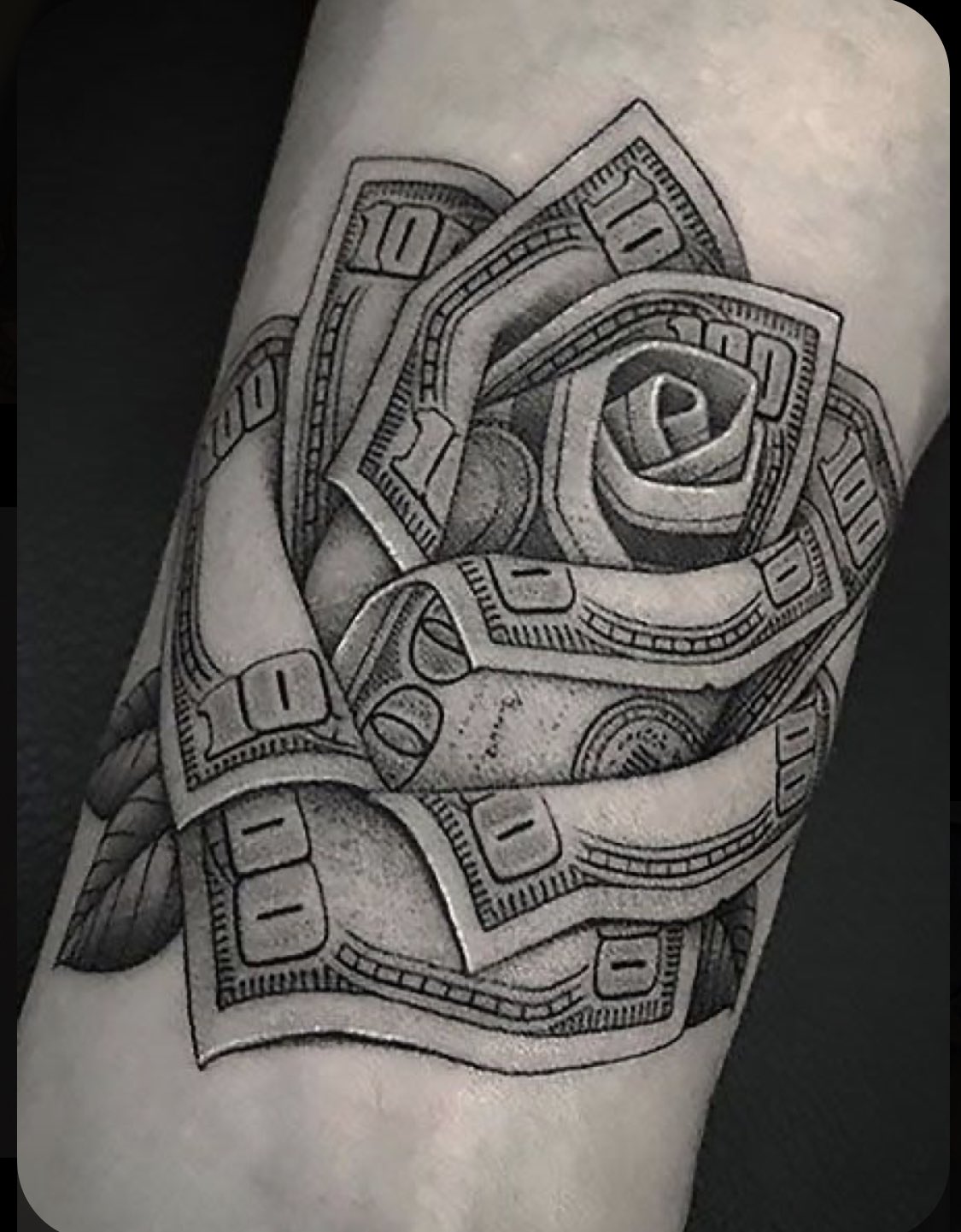 ゆっけ🤪人の目なんかきにすんな on X: "『好きなものをアートとして身体に残し生きる』 みなさんお金好きですよね? だったらお金もタトゥーにしちゃいましょ!笑海外では人気で薔薇の花を札束にしたデザインは個性的で新しい目を引くデザインです! https:t.co。