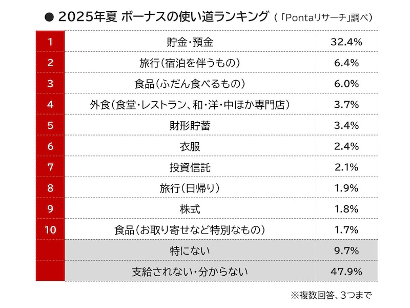 2025年夏のボーナス、7割超が支給。一方、過半数は支給額に「満足していない」。物価高を背景に、「貯蓄」「投資」を重視する傾向が鮮明に株式会社400Fのプレスリリース。