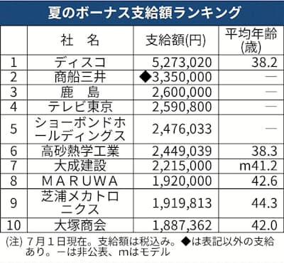 夏ボーナス、23業種で増加 「100万円以上支給」初の3割超 伸び率、体力差映す - 日本経済新聞。