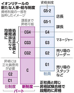 パートと正社員を完全同待遇に イオン中核企業、退職金やボーナスも:朝日新聞。