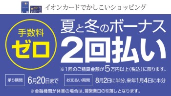 イオンカード金利・手数料ゼロ!夏のボーナス1回払い -ニュース:名古屋mozoオーパ。