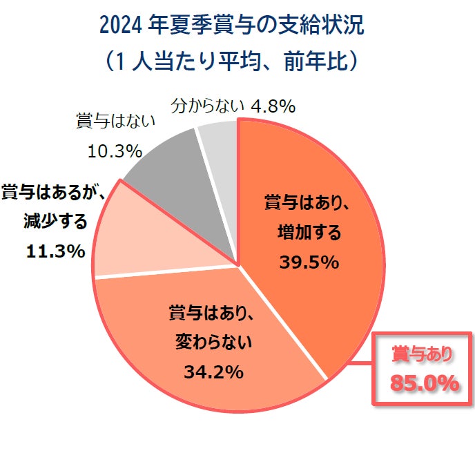 夏ボーナス 85%の企業が2024年夏季賞与を「支給予定」、“支給額増加”も約4割に。企業規模による格差はいまだ埋まらずか人事のプロを支援するHRプロ。