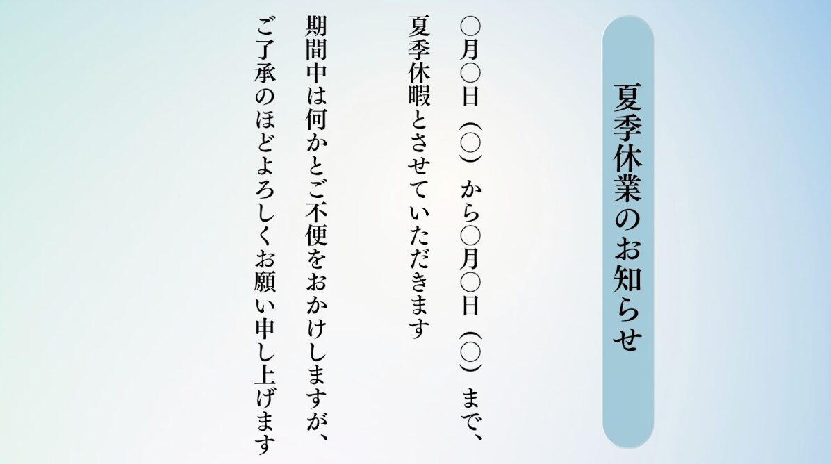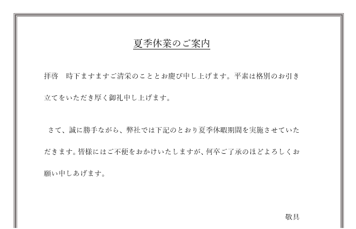 シンプルな夏季休業の案内状の例文・書き方や無料テンプレート📑無料ダウンロード!テンプレルン📑無料ダウンロード!テンプレルン。