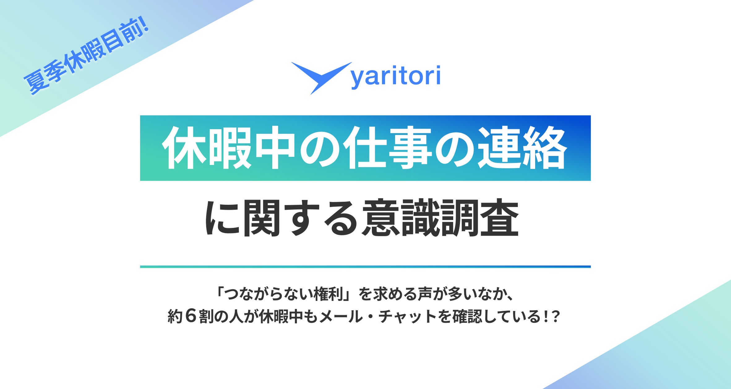 夏季休暇目前! 休暇中の仕事の連絡 に関する意識調査をメール共有・問い合わせ管理システム「yaritori」が実施Onebox株式会社のプレスリリース。