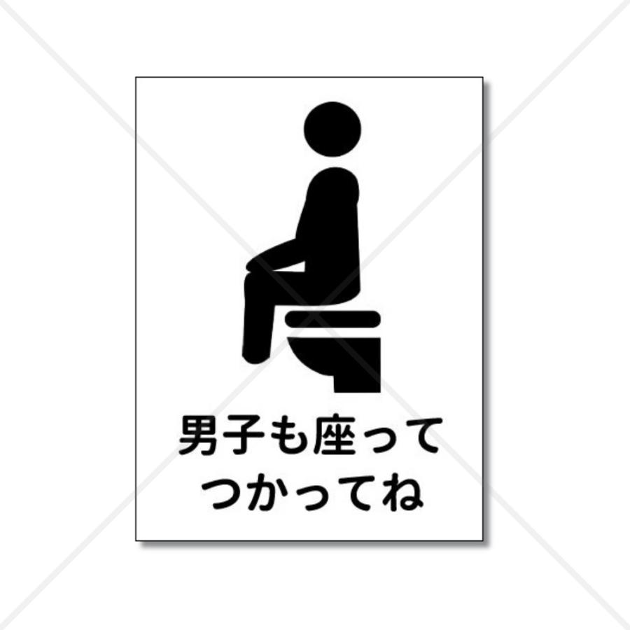 立ちション禁止・トイレ掃除・便座掃除・居酒屋・店舗・自宅 男子も座って使ってね色付きシール トイレサイン・トイレマーク・レストルーム。