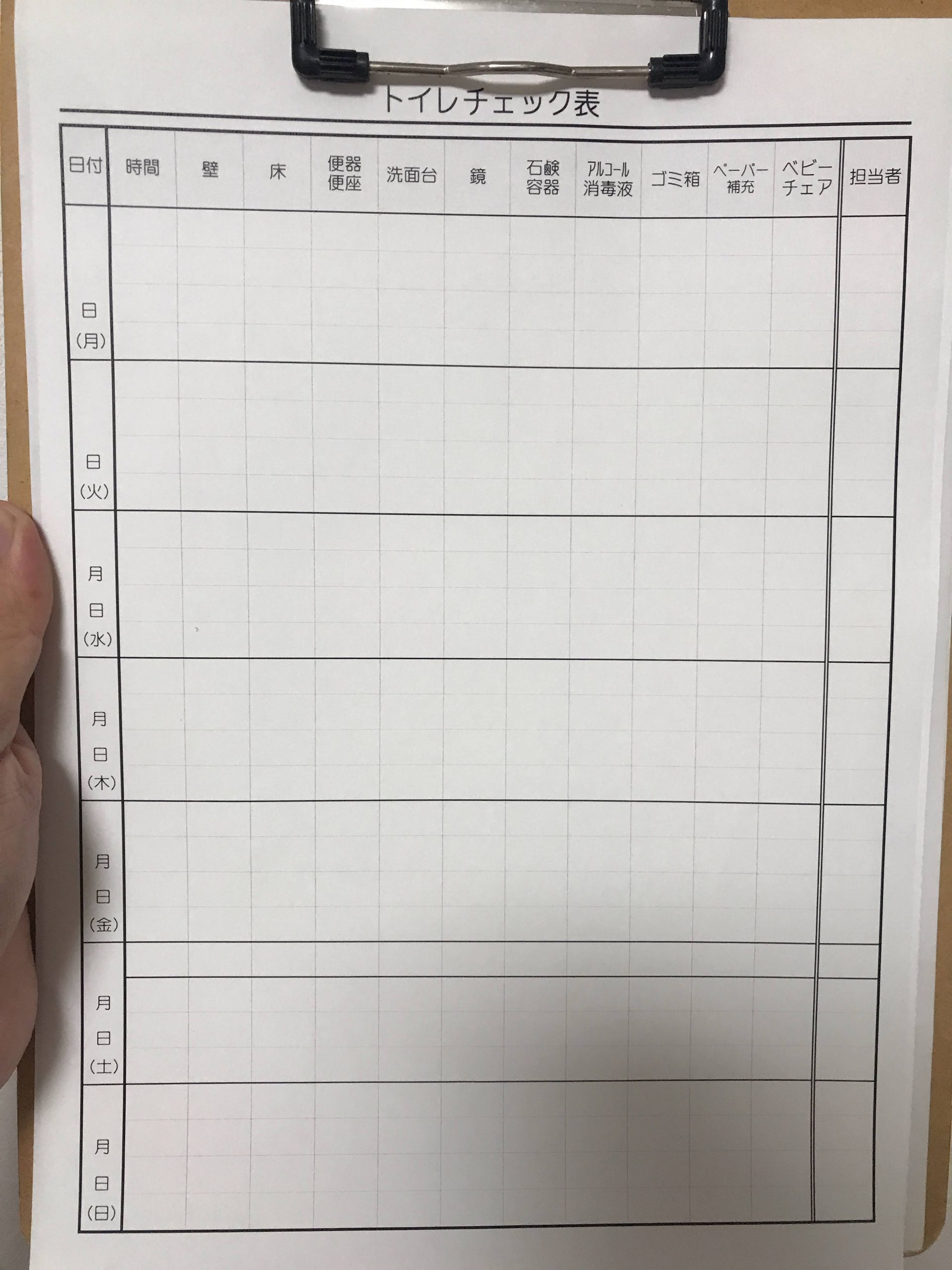 定時のトイレ清掃チェックをして清潔な状態を維持するカフェコンサルタントのいながき。