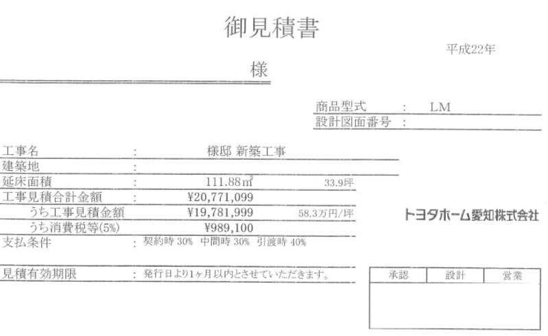 トヨタホームの見積もり公開!!坪単価や値引額は?│幸せづくり家づくり。