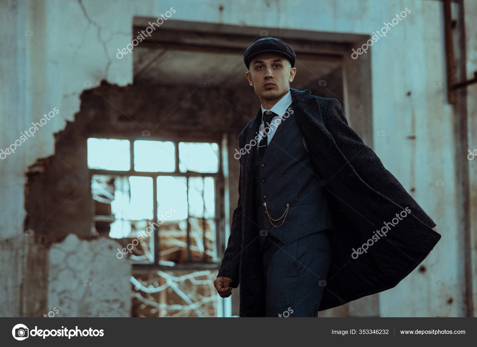 レトロな 1920 年代英語ギャング スーツとフラット キャップを身に着けています。の写真素材・画像素材 Image 74372918。