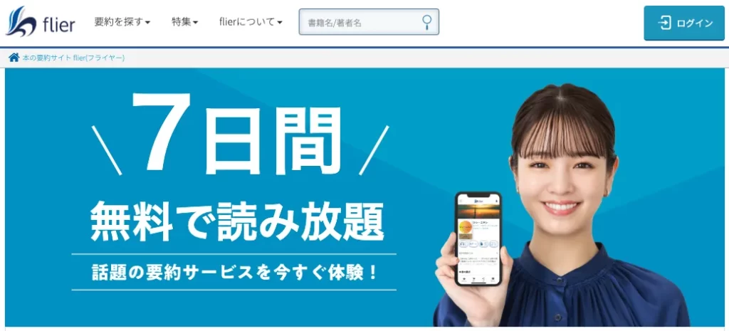本の要約サービス flier フライヤー7日間読み放題無料キャンペーン。