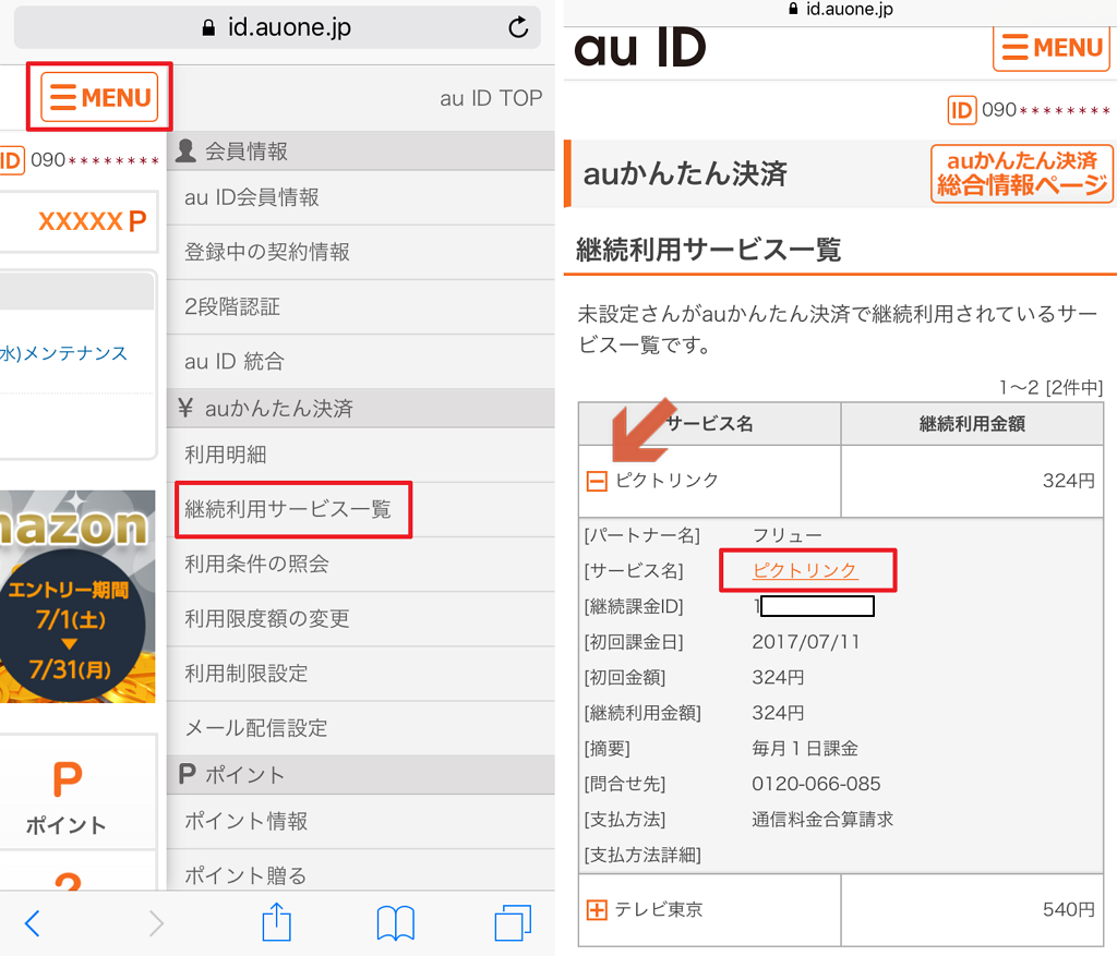 au PAY auかんたん決済継続利用サービスの解約手順を教えてください。