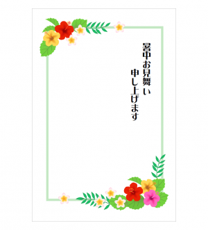 ハイビスカスの暑中お見舞いはがきテンプレート・Word無料のビジネス書式テンプレート。