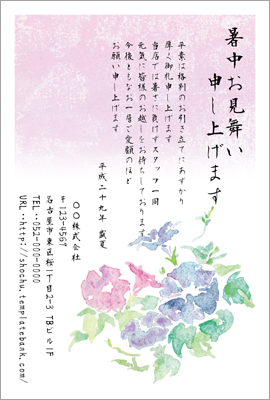 水彩画タッチのアサガオの暑中見舞いハガキbizocean ビズオーシャン。