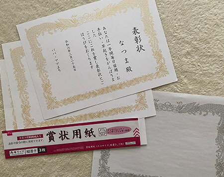 100均ダイソー・セリアアイテムで「表彰状・感謝状・賞状」を子供に贈ってみよう - natsuma.jp どこで買える。