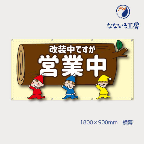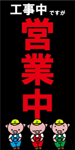 名入れ 名前入れ 店名 オリジナル オーダーメイド パンダ 改装中ですが営業中です 横 幕 懸垂幕 垂れ幕 タペストリー ターポリン幕 足場シート900×1800 防炎 横断幕・垂れ幕・懸垂幕の印刷が3,025円│横断幕・懸垂幕キング。