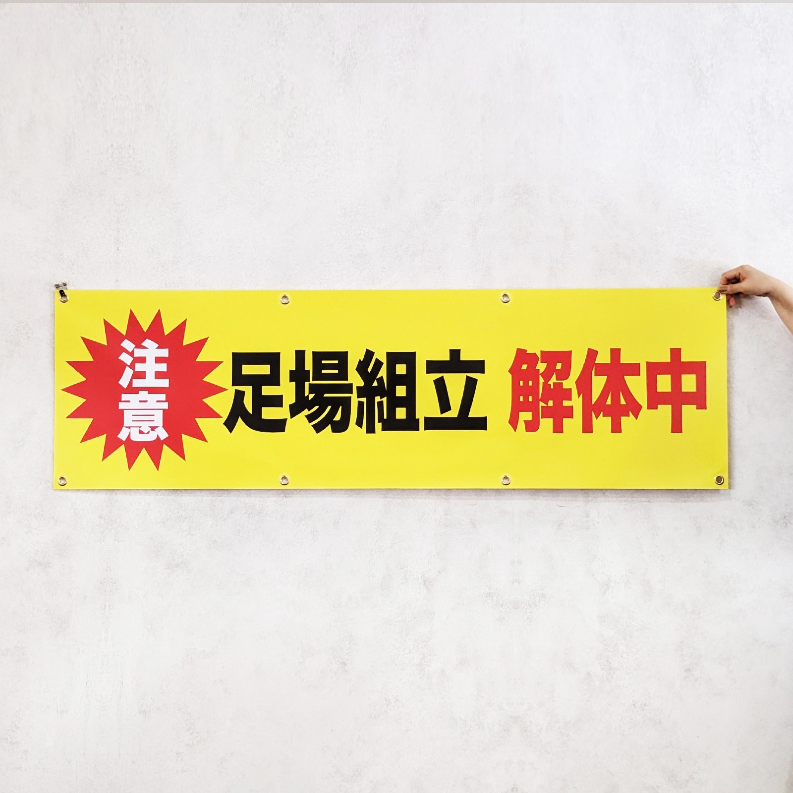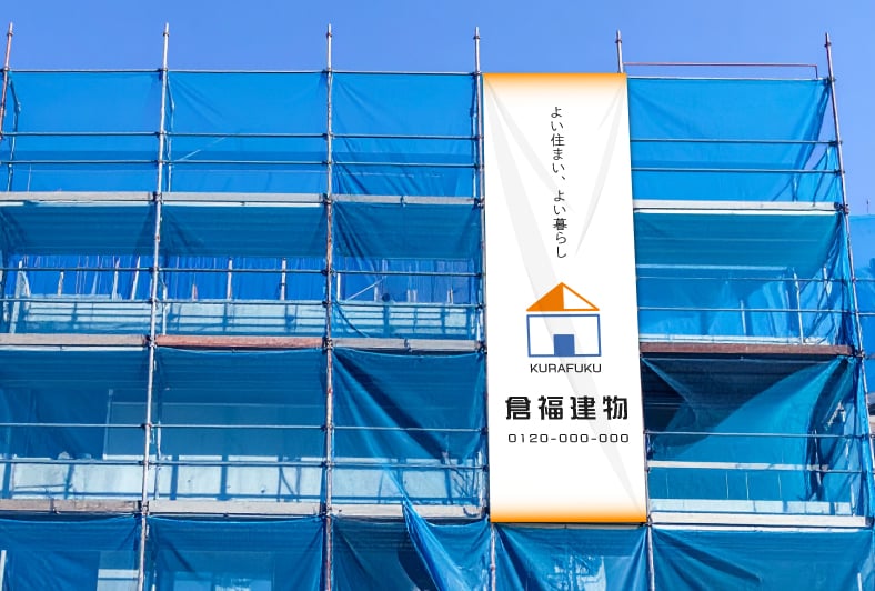 オリジナル 横断幕 垂れ幕 布 ポリエステル 軽量 お値打ち 防炎 足場シート 工事 養生 屋内 屋外 デザイン オーダーメイド 900x900最短2日後発送!オリジナル足場幕・現場シート作成なら - 現場シートメーカ。