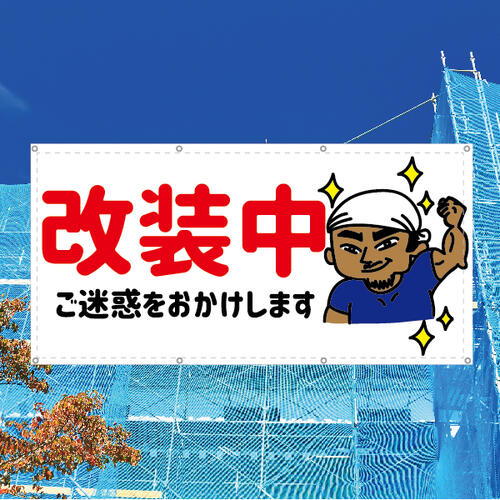 防炎 改装中 親方 男 お知らせ 幕 オリジナル 懸垂幕 垂れ幕 タペストリー ターポリン幕 足場。