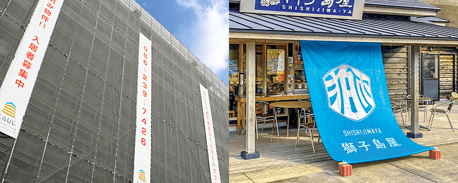 防炎 営業中 改装中 お知らせ 幕 懸垂幕 垂れ幕 タペストリー ターポリン幕 足場シート。