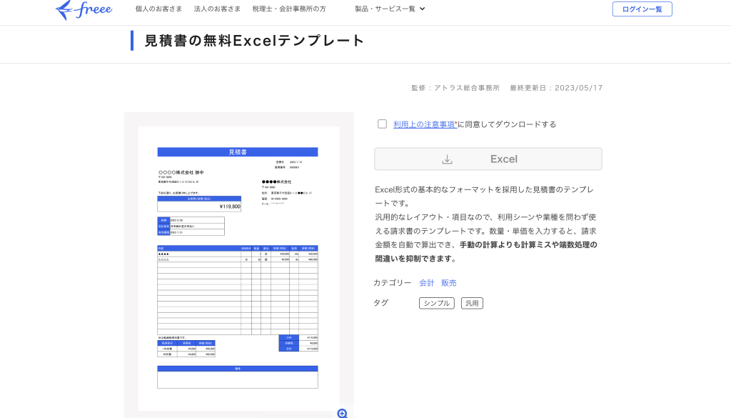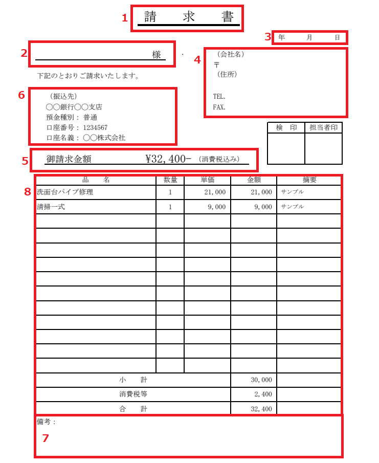 登録不要・無料で使える請求書エクセルテンプレート サンプル 、作成・書き方。