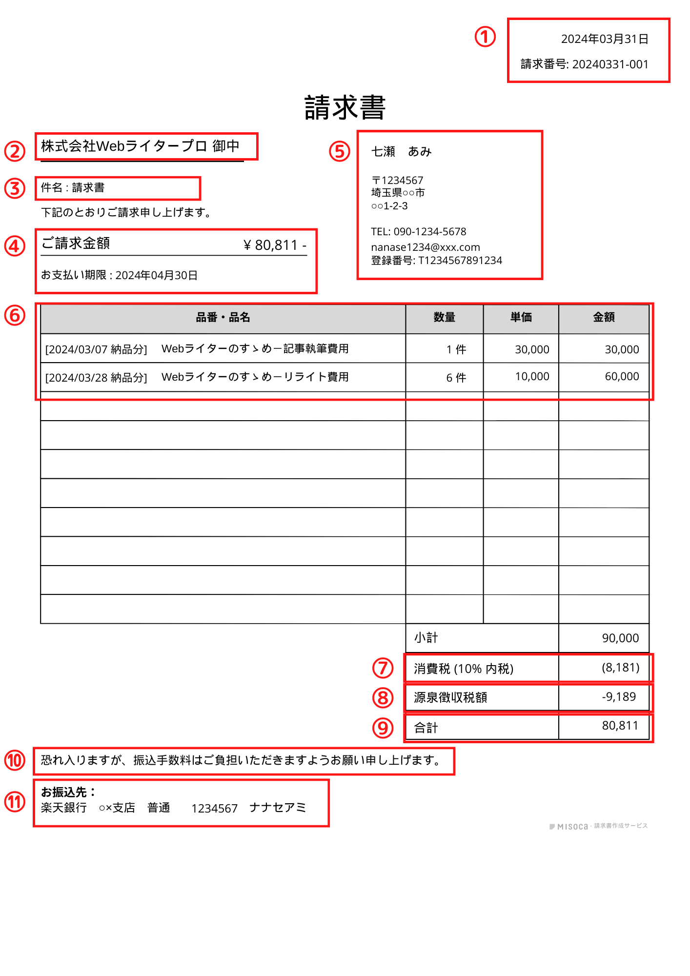 Webライター向け請求書の作り方完全ガイド!必要な11項目と源泉徴収や消費税の知識Webライターのすゝめ。