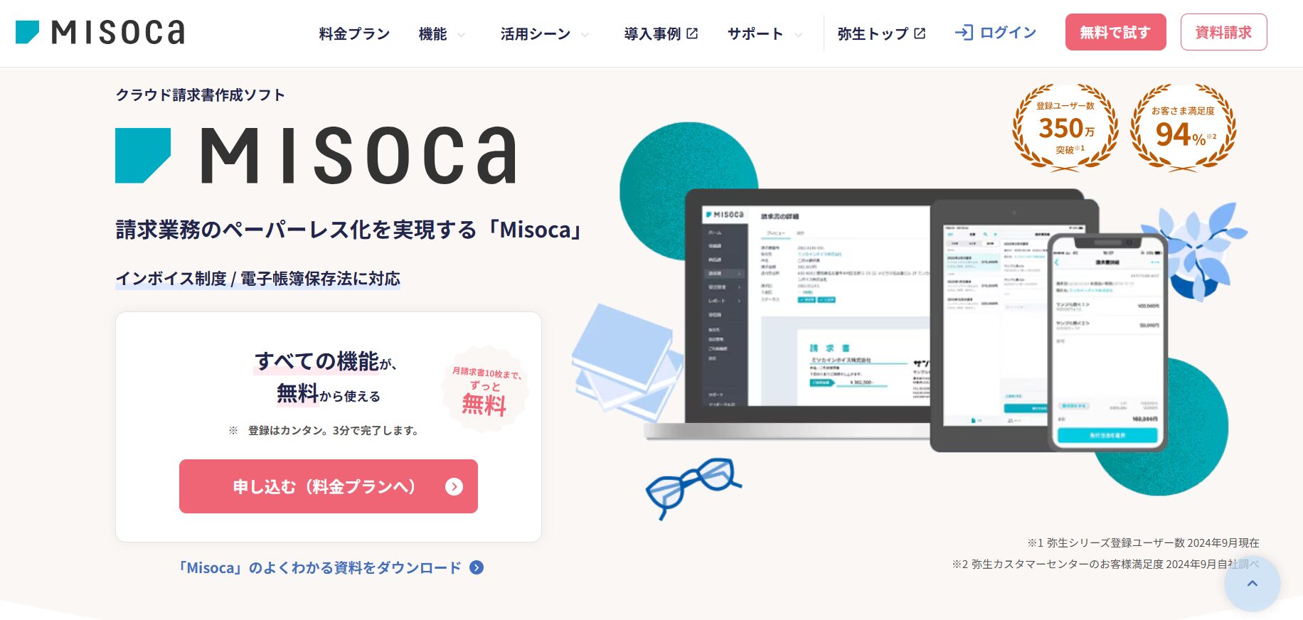 帳票がかんたんにつくれる請求書作成ソフト - Misoca ミソカ- 弥生株式会社 公式。