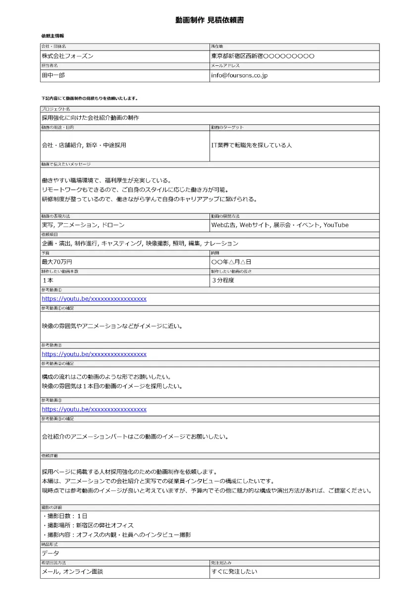 株式会社フォーズン無料で利用できる『動画制作見積依頼書・自動作成サービス』をリリース株式会社フォーズンのプレスリリース。