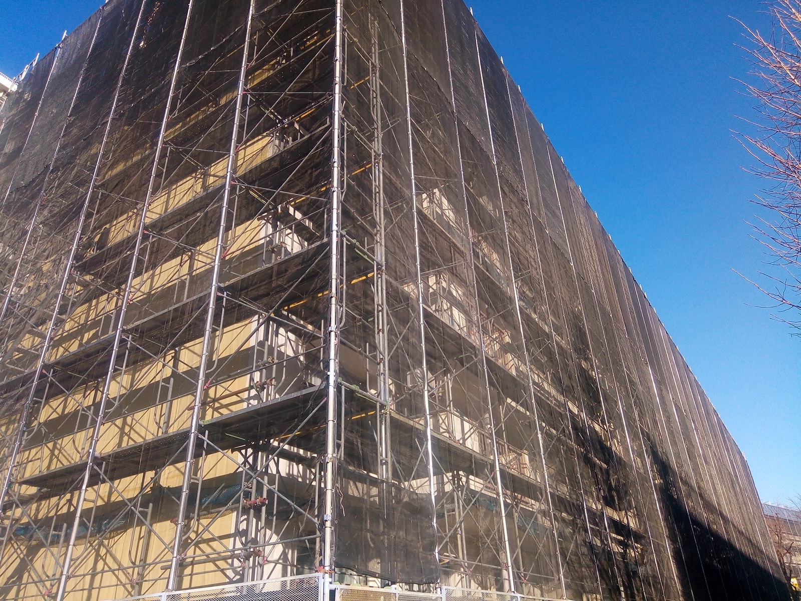 東京都北区 マンション部分改修足場工事 昇降足場:株式会社甫架設│埼玉県川口市の足場工事・大規模修繕工事。