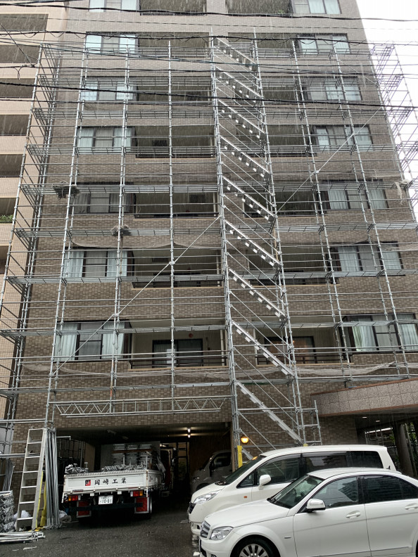 マンション組立~続き~岡﨑工業 足場工事一式 福岡 福岡市 東区 中央区 西区 城南区。