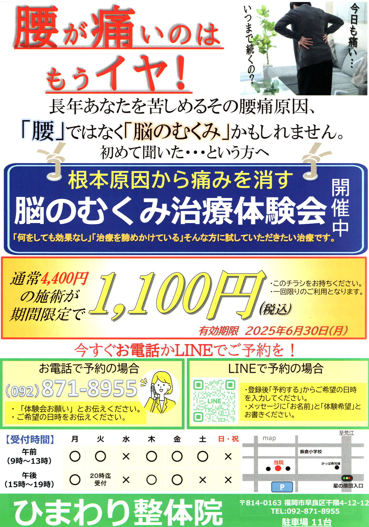 福岡市早良区干隈 脳のむくみ治療体験会のチラシを配布ひまわり整体院様 - アシストBB - 福岡のポスティングを効果的なチラシ 配布とマーケティング戦略でアシスト。