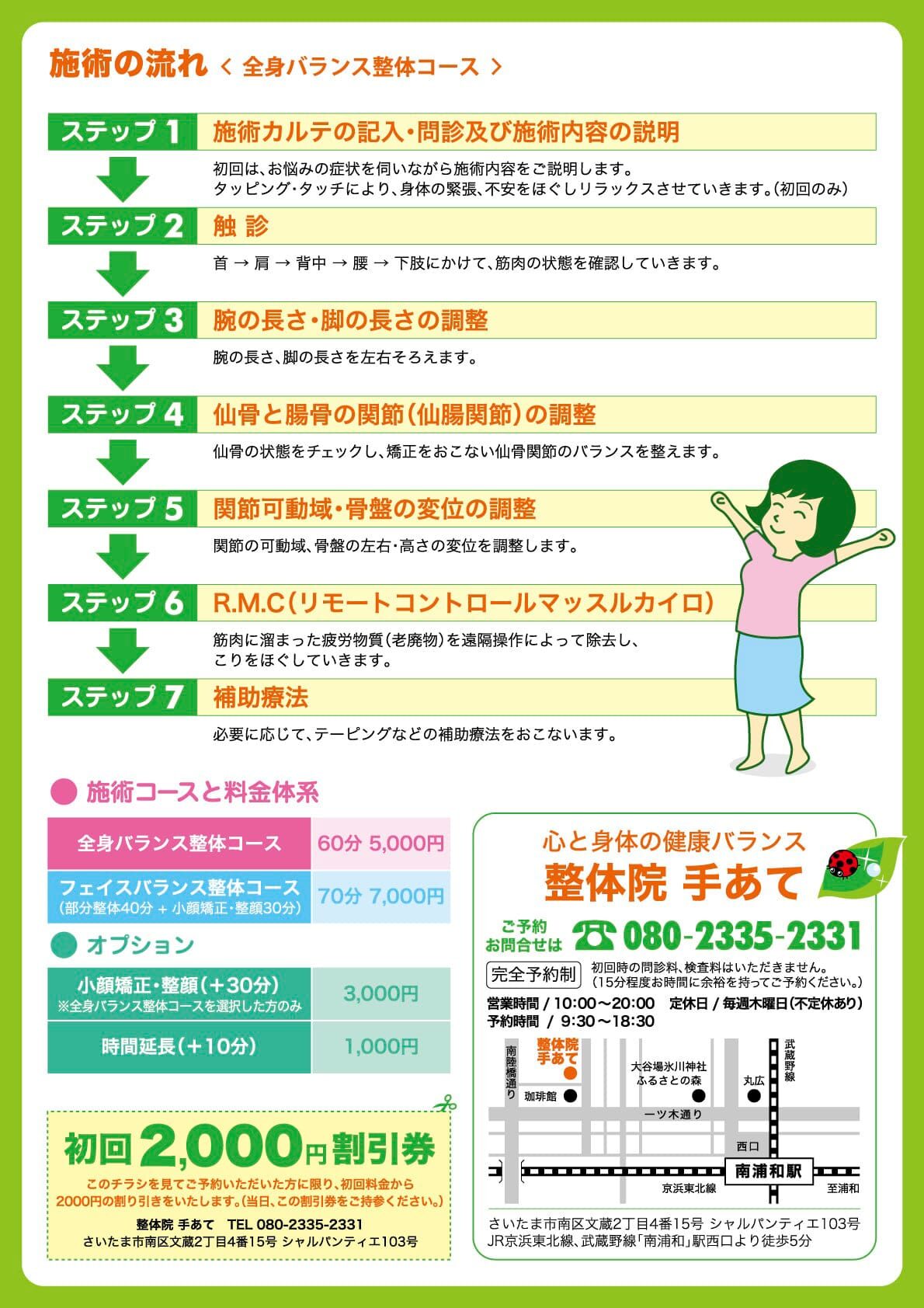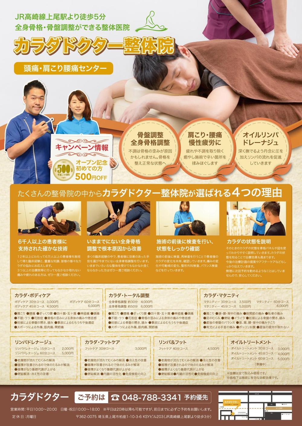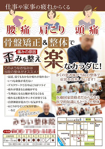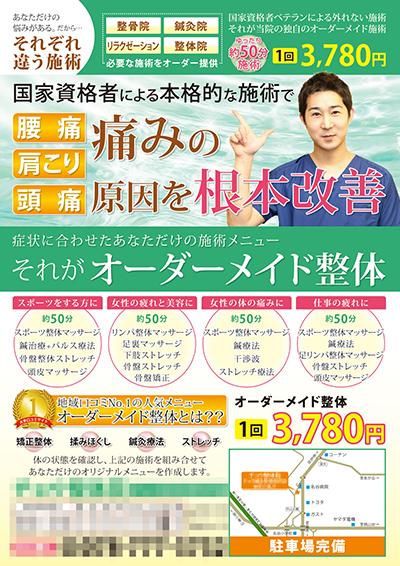 Bサイズ 大阪市整体院チラシ医療チラシのデザイン実績チラシ印刷・デザイン・配布は イイチラシ。