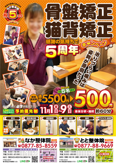 整体_周年キャンペーンチラシ・フライヤー医療・介護・整体の無料デザインテンプレート印刷のラクスル。