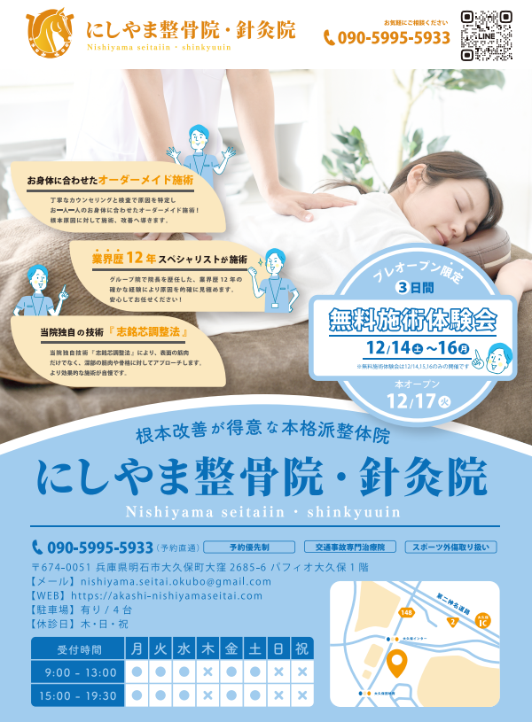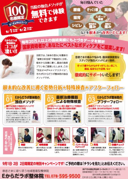 整体院の無料体験会のおしらせアリキヌ:チラシ制作部。