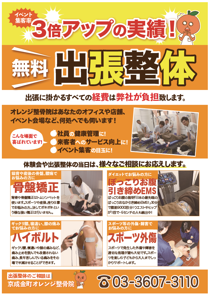出張整体チラシ のデザイン制作例を追加しました。チラシ、パンフレットのデザイン・制作・作成・印刷は丸投げOKのイイダデザイン。