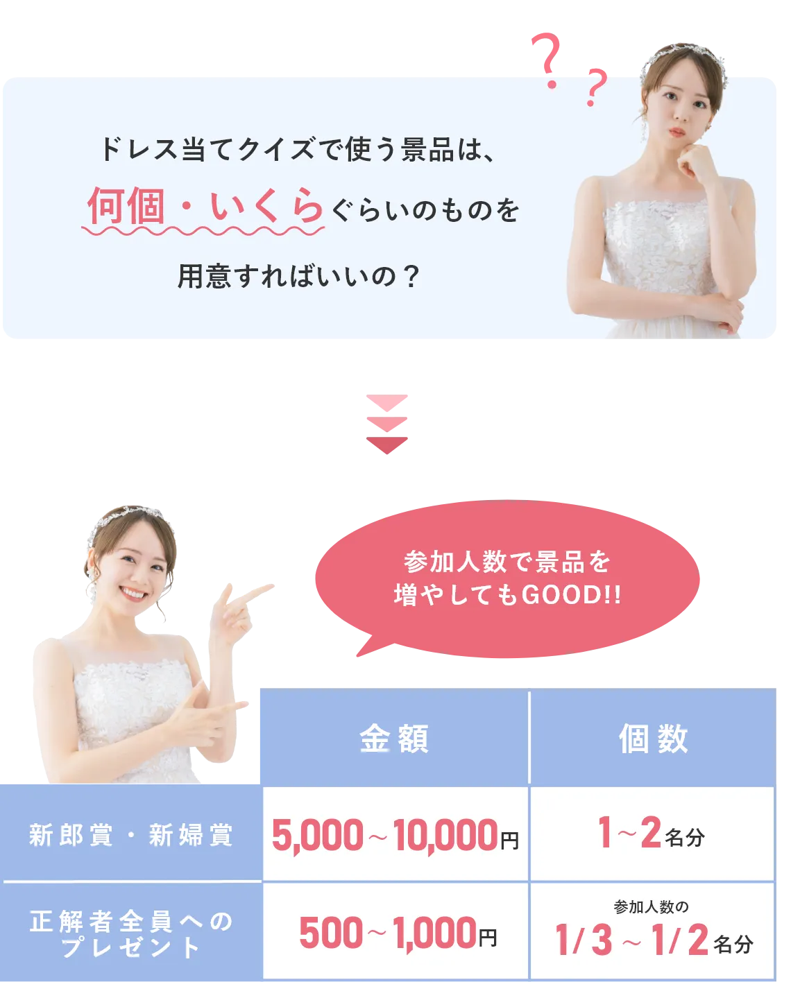 ドレスの色当てクイズの景品、人数・予算はどうする?marry マリー。