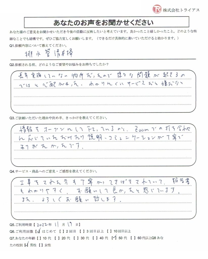 配管清掃 戸建限定 排水管の高圧洗浄コープライフサービス。